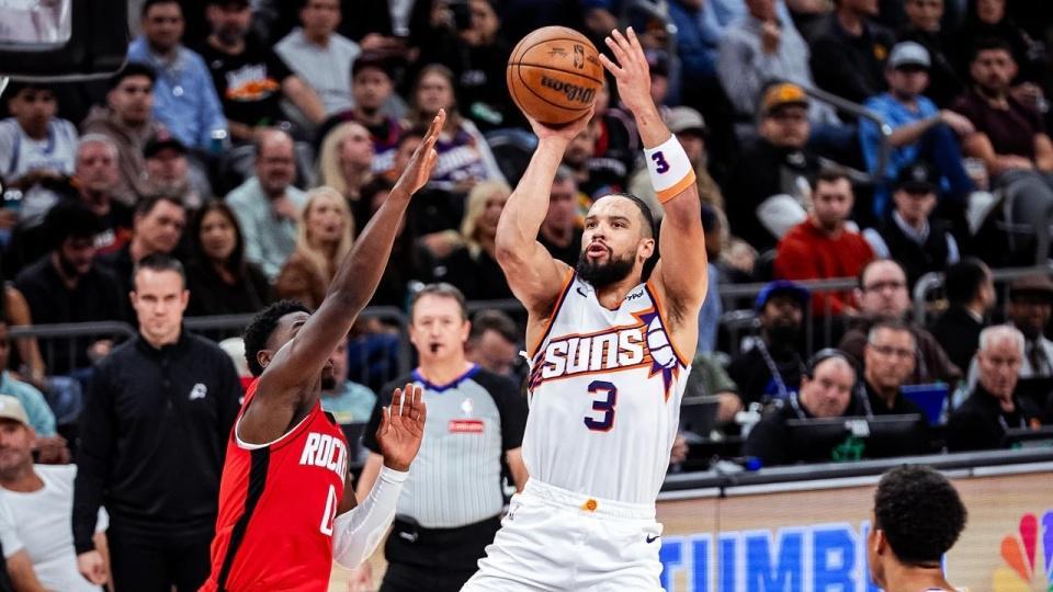 特别是狄龙的个人角色转变,他从过去人们印象中的防守悍将进化为太阳队的进攻二当家,场均得分20.2分更是9年职业生涯的最高水平,我说白了,他现在攻防一体了,这种反差就好比是奥尼尔突然会罚篮了、西蒙斯突然会投三分了,杨瀚森突然当主力了,非常令人吃惊,那他的进攻为什么突然变这么强呢?为了解开大家的疑惑,今天的球员上上测就通过数据简单分析一下.