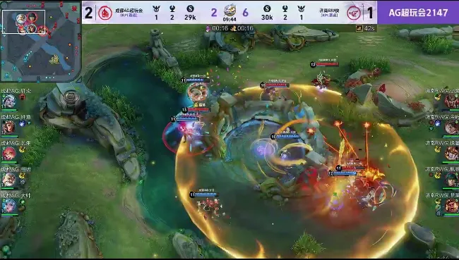 蓝色方:成都AG超玩会 红色方:济南RW侠